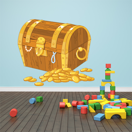 Sticker Pentru Copii Cufar si Piese de Aur